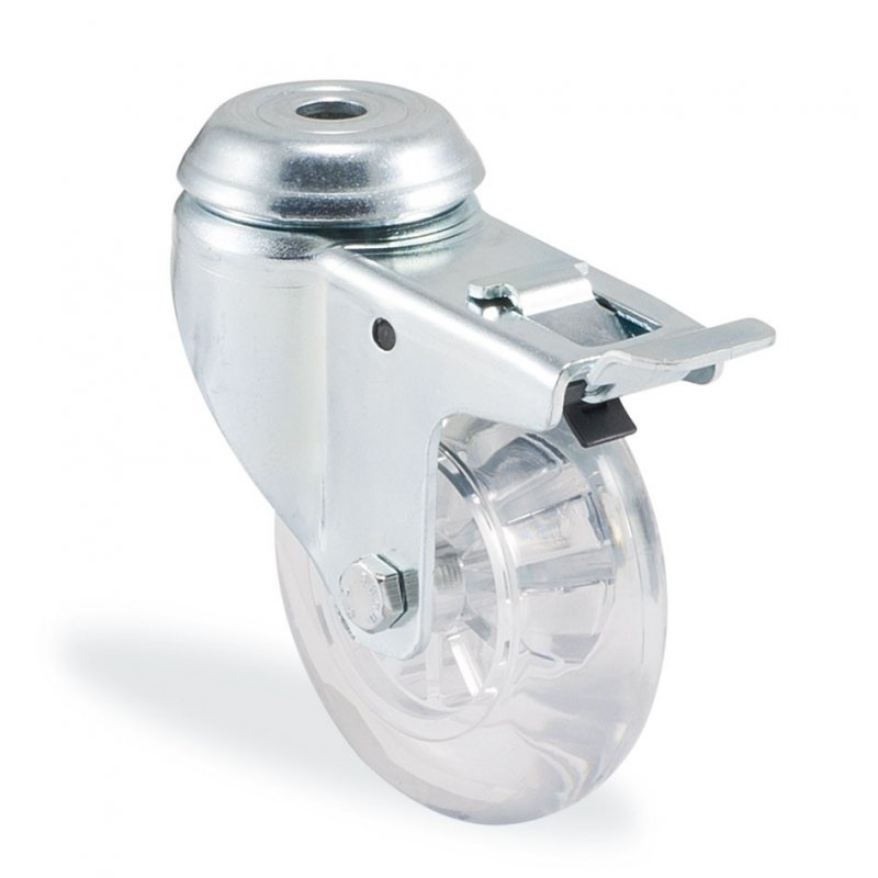 OYNAK DELİK BAĞLANTILI, MAVİ PASİFİZE EDİLMİŞ GALVANİZ KAPLI, TEKERİ VE MAŞAYI KİLİTLEYEN FREN SİSTEMLİ MAŞA